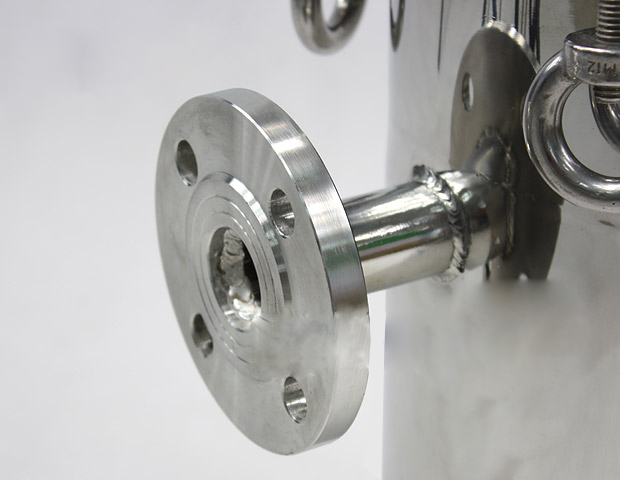籃式過濾器主要由接管、主管、濾藍、法蘭、法蘭蓋及緊固件等組成。當液體通過主管進入濾藍后,固體雜質顆粒被阻擋在濾藍內,而潔凈的流體通過濾籃、由過濾器出口排出。當需要清洗時,旋開主管底部螺塞,排凈流體,拆卸法蘭蓋,清洗后重新裝入即可。因此,使用維護極為方便。 1、籃式直通法蘭連接式過濾器(LDLLSⅠ型),見圖(DN25~300,PN≤5.0MPa)